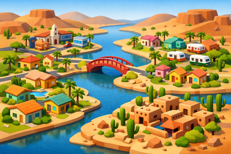 Arroyo Vista is renowned for its unique Spanish-inspired architecture, with homes built around tranquil central courtyards. The close-knit community regularly organizes events like pool parties and seasonal block gatherings, fostering an inclusive and friendly atmosphere. Arroyo Vista is especially suited for families seeking an active lifestyle and a safe, neighborly environment. Its picturesque streets, lush landscaping, and focus on community involvement make it a top choice among Bullhead City’s residential options.